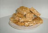 Попробуйте плитки из арахиса, воздушного риса, соленых крендельков и арахисового масла.
