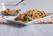 Коричневый рис, богатый клетчаткой, низкокалорийное филе индейки и овощи — в итоге получается вкусное и довольно полезное блюдо.