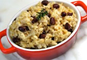 Восхитительное ароматное блюдо. Рис и фасоль, приготовленные в кокосовом молоке с тимьяном, зеленым луком и перцем чили.