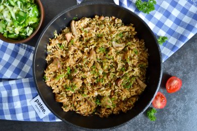 В этом рецепте вы найдете великолепное сочетание бурого и дикого риса, грибов, сливок и сыра. Можно это блюдо приготовить и из обычного риса.