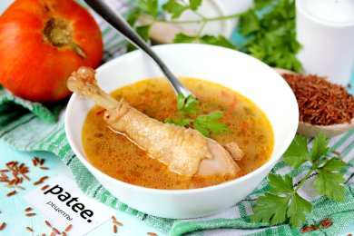 Готовим сытное и оригинальное первое блюдо - суп с курицей, красным рисом и помидорами! Суп получается насыщенным, ярким как по вкусу и аромату, так и по внешнему виду.