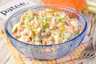 Один из популярнейших советских салатов - это, конечно же, рецепт классической Мимозы! Основные ингредиенты этого салата - рыбные консервы (тунец, сайра, горбуша в масле или собственном соку), сливочное масло, твёрдый сыр и вареные яйца.