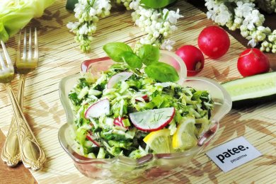 Молодая капуста, редис и огурцы - первые свежие весенние овощи на нашем столе. После длинной зимы как никогда ощущается нехватка витаминов, поэтому салат из этих овощей просто спасение.