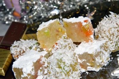 Рахат-лукум с фисташками и цукатами с сиропом из дюшеса
