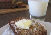 Хлеб на растительном масле с банановым пюре, кокосовым молоком и кокосовой стружкой.