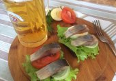 Кусочек солёной сельди на ломтике золотистой поджаренной гренки, смазанной томатным маслом… Просто, оригинально, легко, доступно и нарядно!