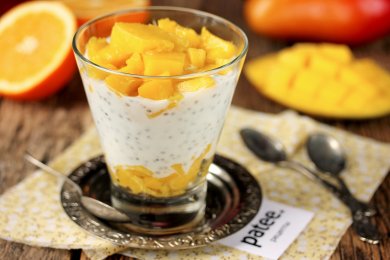 Смузи с манго и соевым молоком и семенами чиа и клетчаткой