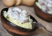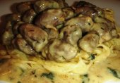 Это простое, домашнее блюдо для любителей куриных сердечек, желудков и печенки. Тушеные потрошки с грибами в нежном соусе со сливками, луком и морковью.