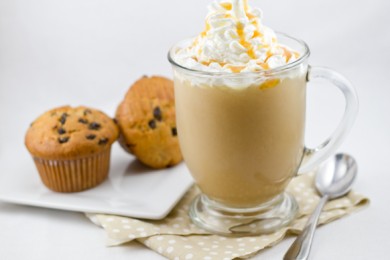 Коктейль из растворимого кофе с молоком (или сливками) и карамельным сиропом. Подавайте, украсив взбитыми сливками и полив карамельным соусом.