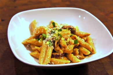 Очень вкусное блюдо из пасты - сладкое, соленое, сливочное, копченое и пряное одновременно.