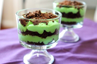 Измельченное мятно-шоколадное печенье с ванильным пудингом - вкуснейший десерт, особенно если проявить терпение и не подавать его сразу, а подержать в холодильнике.