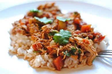 Карри из куриного филе с зеленым перцем, чили и специями в томатном соусе, приготовленное в мультиварке.