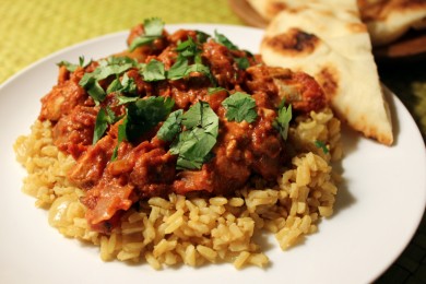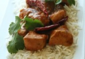 Карри из куриного филе, маринованного в йогурте с гарам масала и имбирно-чесночной пастой и обжаренного в масле с луком и специями.