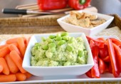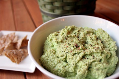Хумус с нутом и очищенными соевыми бобами эдамаме, богатыми белком и клетчаткой. Можно подавать с чипсами пита и свежими овощами.