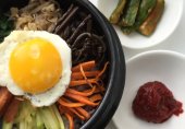 Традиционное блюдо корейской кухни. Зачастую состоит из риса покрытого вокруг мясом и различными ингредиентами: цукини, пророщенными ростками сои, папоротником, шпинатом, редькой и морковкой — всё это называется овощной смесью "намуль".