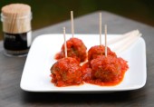 Фрикадельки из говяжьего фарша с луковым и чесночным порошком, томатом, уксусом, медом и томатом, сладкие и терпкие одновременно.