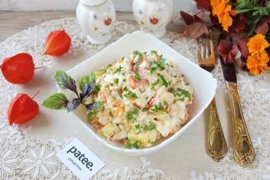 Любителям рыбы хочу предложить отличный салат из отварного морского окуня. Сочная, белая мякоть этой рыбы, содержащей небольшое количество костей хорошо подходит для закусок и салатов.