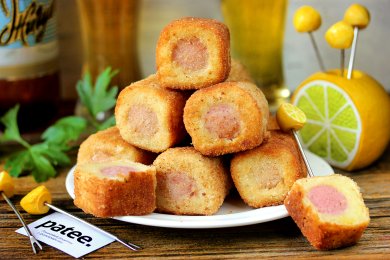 Обычные корн-доги размером с леденец на палочке. Их очень удобно есть, к тому же выглядят они весьма аппетитно.