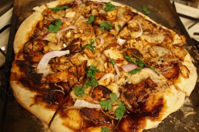 Тонкая хрустящая основа и начинка из мягкого куриного мяса… Подайте домашнюю пиццу с соусом барбекю и наслаждайтесь вечеринкой.