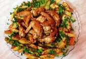 Куриные крылышки в соусе барбекю и хрустящие картофельные дольки