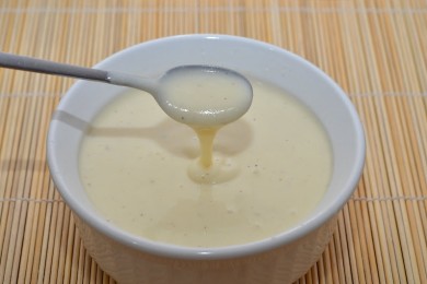 Белый сливочный соус без молока, приготовленный из орехов кешью с мукой, оливковым маслом и специями.