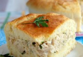 Пирог с куриным филе, сваренным и нарезанным кубиками, и молочным соусом Бешамель. Благодаря соусу, куриное филе становится более сочным, а пирог - более вкусным!
