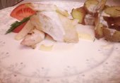 Морские гребешки с соусом бешамель и салатом из свежих овощей