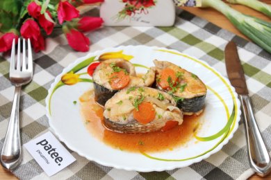 Учитывая, что рыбу нужно есть хотя бы один раз в неделю, приготовим сегодня минтай в томатном соусе с луком и морковью.