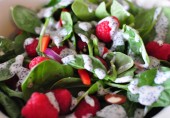 Легкий летний салат со шпинатом, малиной, маком под соусом.