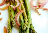 Запеченная спаржа с луком