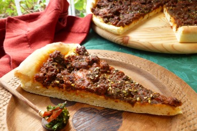 Лахмаджун буквально переводится как мясо в тесте. Это дальний родственник пиццы со сложной начинкой из мяса и овощей.