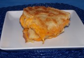 Бутерброды с курицей-гриль, тертым сыром и перцем халапеньо, обжаренные на сковороде-гриле.