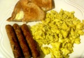 Рисовый плов в четырьмя сортами сыра, жареным беконом и карамелизованным луком.