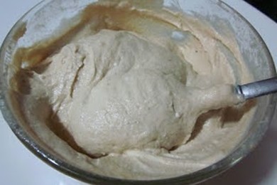 Хумус - полезное блюдо для вегетарианцев и просто следящих за здоровьем людей. Это вариант с лимонным соком, соевыми бобами и чесноком - очень пикантный.
