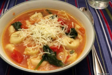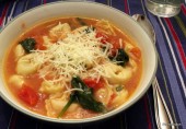 Вкусный суп с итальянскими пельмешками тортеллини.