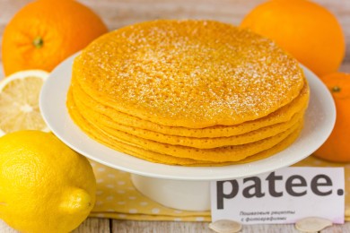 Вкусные и ароматные сладкие блинчики с добавлением тыквенного пюре, сока и мякоти грейпфрута- вы непременно должны их попробовать!
