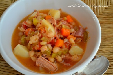 Не выбрасывайте мясо на косточке, мясной бульон и нарезанную ветчину, оставшиеся после праздника, и сделайте этот восхитительный суп.