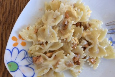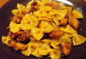 Фарфале с курицей в медовом соусе.