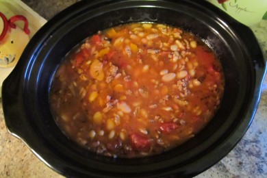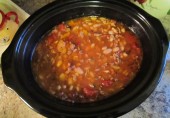 Фасолевый суп с овощным бульоном, консервированными помидорами, сальсой, луком, чесноком и специями, приготовленный в медленноварке.