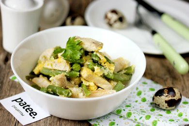 Стручковая фасоль с курицей и яйцом