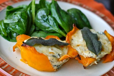 Эти корзиночки из мускатной тыквы очень вкусные, но в то же время низкокалорийные. Если при приготовлении данного блюда использовать продукты с низким содержанием жира, то в одной порции будет всего лишь 182Ккал.
