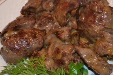 Утиная печень тушеная в сметане