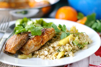 Медальоны из свинины можно приготовить на гриле и подавать с коричневым рисом.