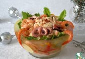 Салат 🥗"Морской бриз"🍃с печенью трески и сельдереем на листе цикория.