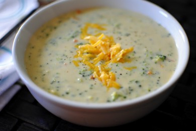 Вкусный сливочный суп из брокколи с кусочками сыра Чеддер. Если вы ждёте гостей, приготовьте этот суп.