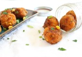 Шарики из сладкого картофеля, с обжаренной кукурузой, чеддером и паприкой.