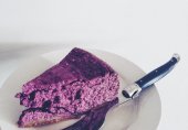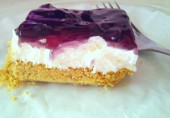 Невыпекаемый чизкейк с коркой из раскрошенных крекеров с маслом и сахаром, сливочной начинкой и черничным джемом.
