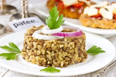 Чечевица, обжаренная в масле с луком и чесноком и сваренная в бульоне. При желании можно добавить в бульон овощи - кабачки, брокколи, морковь или тыкву.