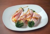 Закуска "Вкусные свитки"Ингредиенты:яйца куриные - 2 шт.ветчина (нежирная) - 250 гсыр плавленый - 1-2 шт.