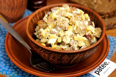 Готовим лёгкий в приготовлении и необычный салат с сухариками и сыром косичка из доступных ингредиентов!